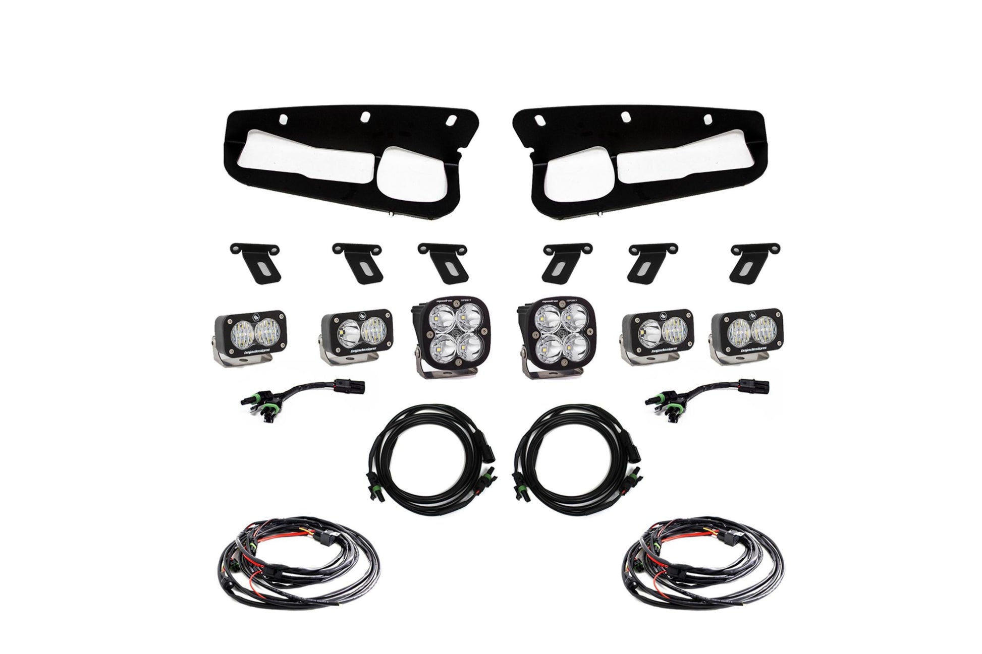 New from Baja Designs: Style, fitment, performance, and ease of installation. This kit is designed for the Ford Bronco enthusiast that is looking to light up the trail with ample light, and differentiate yourself from the pack. This kit specifically utilizes a set of S2 Sports in Driving/Combo, a set of S2 Sports in Wide Cornering, and a set of Squadron Sports in Spot. The brackets used to mount this performance oriented light setup ensure no cutting or drilling, and the wiring that is included will allow for the lights to be operated from a toggle switch in the cab. This is a comprehensive kit and does not require any additional parts for installation.