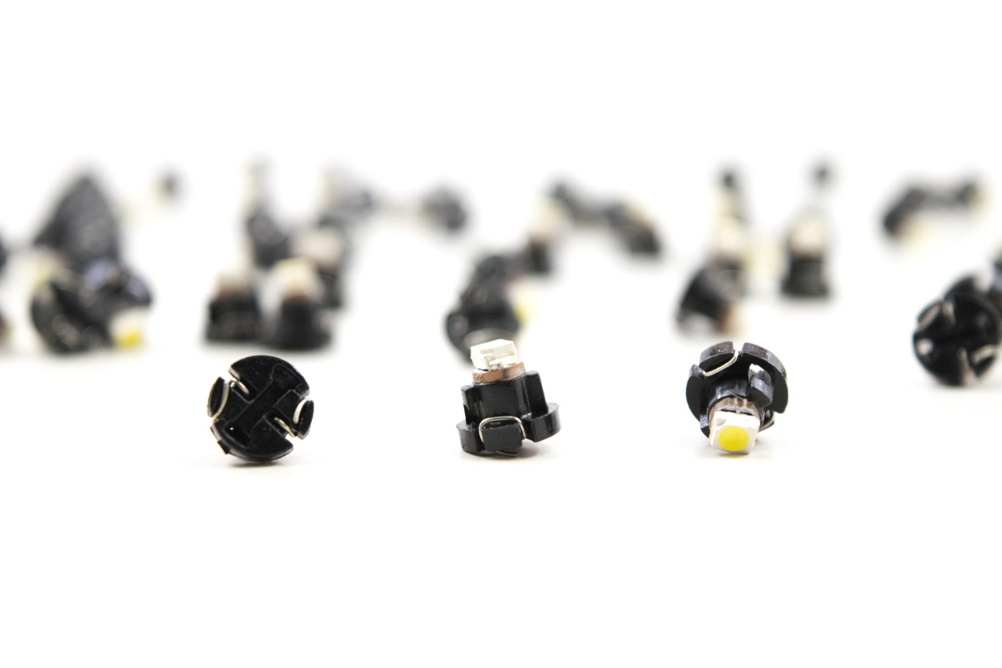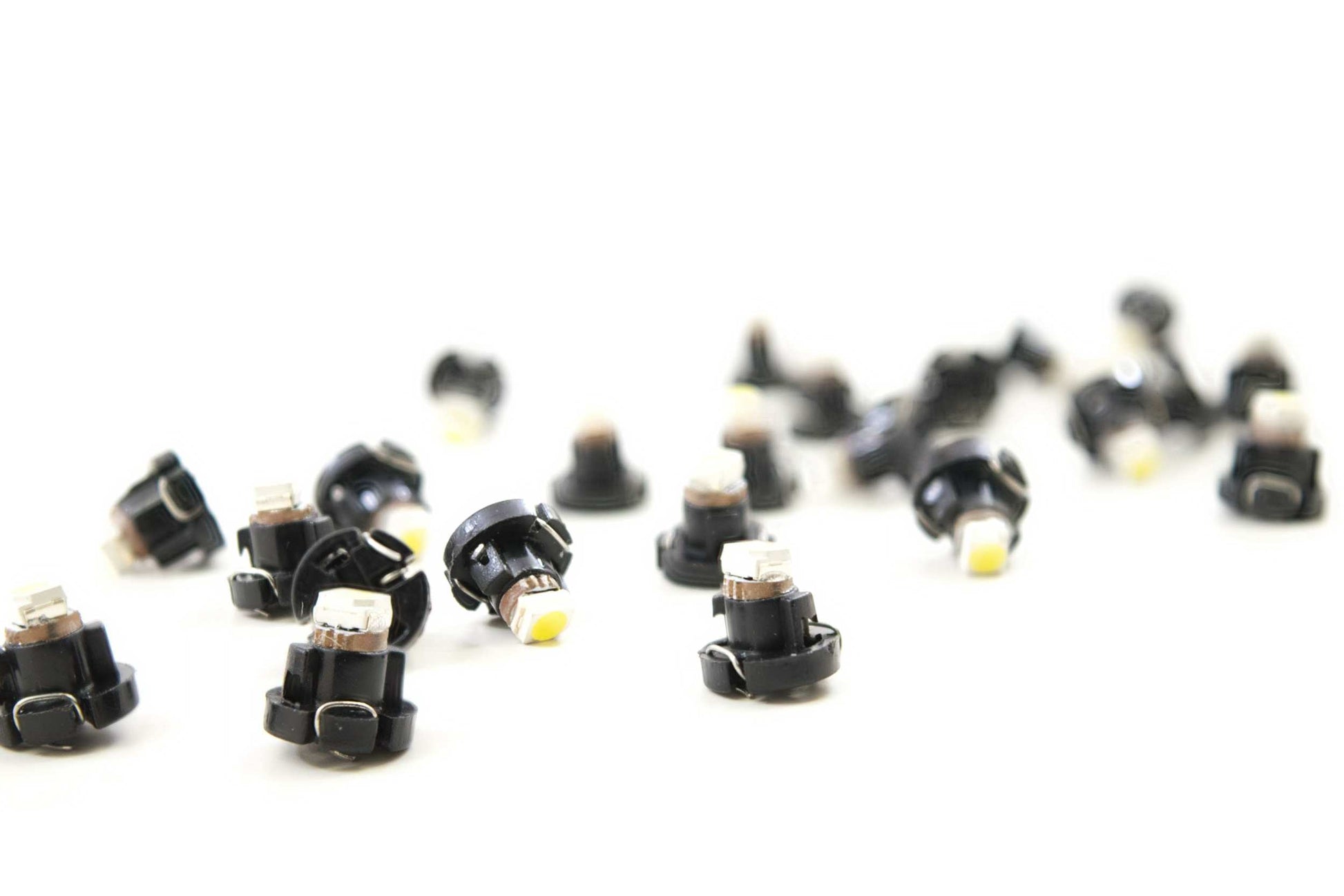 Profile Performance: It's not like LED bulbs in the automotive world are a new thing, but these guys are coming in hot and packing a serious punch with the new Crown series. Lucky for us they're still offering some value-minded options that won't break the bank, but don't mean much compromise in the performance department too. Though fairly basic, their T3 dash bulbs are are a top seller because they work well, cost next to nothing, and never fail. We love em, and so do our customers! Multi-Use: 20 lumens might not sound like a lot, but it's far brighter than your stock halogen dash bulbs.The Crown LEDs make for an awesome upgrade in performance and style. If you're looking for something brighter and whiter: then you can pick up a handful of the Crown T3 LED bulbs for your dashboard upgrade project and we know you'll be happy with 'em. Modern: The Crown T3 LED bulbs are superior to other options from an installation and compatibility standpoint. The main body of the bulb doubles as the base with a double-wide contact to ensure perfect contact with factory bulb sockets. (no thin wire-based contacts that can easily bend out of the way or even break). The composite base will last forever, won't crack or become brittle over time. Industrial: No fancy looking housing here! The Crown T3 puts everything they've got out in the open. The naked LED chip is directly in view and there are no frills... and why should there be? Once it's installed, the only thing you should care about is their performance & reliability. Profile is all about producing added performance without the extra price, and that shows given how well they work and how inexpensive they are. CanBus: The Profile Crown LED bulbs are CanBus friendly and shouldn't cause any dashboard errors in most every application. No need for extra resistors or inline modules to resolve that. Just Plug n Play! By the Numbers: One powerful 3528 cool white LED. 20 lumens per bulb. less than 2 bucks per bulb. All of that should add up to one happy customer!